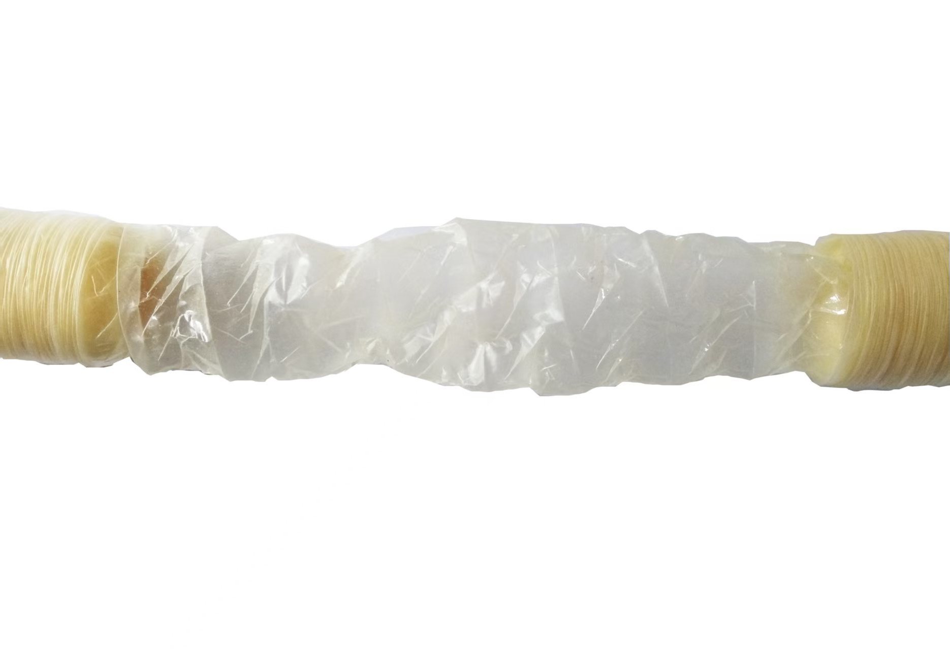 Verpakt in kartonnen dozen - Gekrompen darm (staaf), elke staaflengte 25m, 30m, 35m of 40m afhankelijk van de maten.